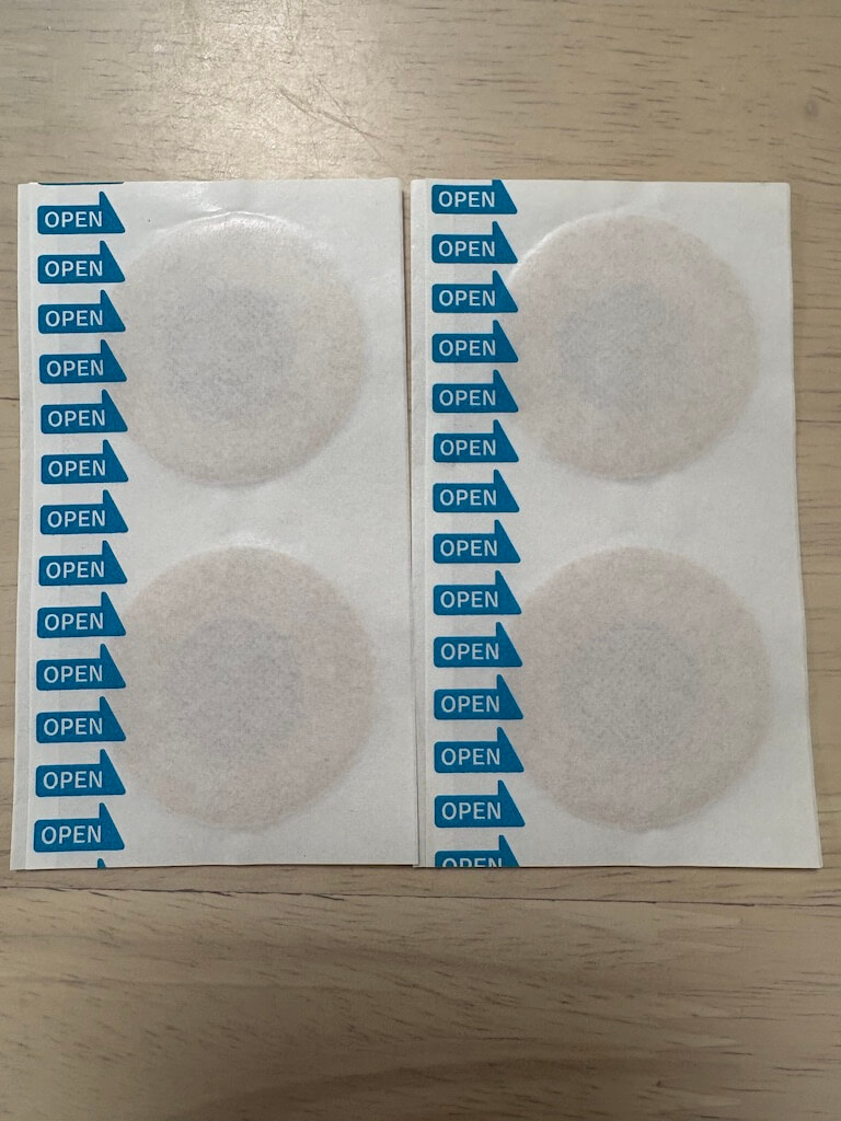 丸形でコンパクトなため、走る前にサッと貼れます。粘着力も強すぎず、肌にやさしい感触です。